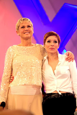 A outra foto mostra Patrícia Marx ao lado de Xuxa, na gravação do programa dela. Patrícia cantou sucessos antigos, como "Sonho de Amor", e também suas músicas mais recentes. A participação da Paty ainda não tem data para ir ao ar, e faz parte da divulgação do novo trabalho da cantora, comemorando seus 30 anos de carreira.